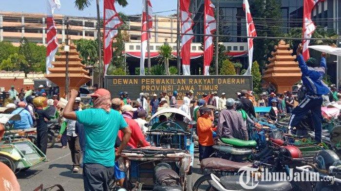 Ratusan Sopir Becak Motor Geruduk Kantor DPRD Jatim Hari Ini, Minta Supaya Razia Bentor Dihentikan