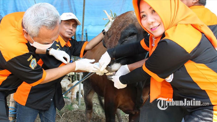 "Sejak empat hari ini telah diperiksa sebanyak 313 ekor sapi, 2.123 kambing dan 90 ekor domba. Pemeriksaan ini akan dilakukan sampai H + 3," imbuhnya. (Surya/Sugiyono)
