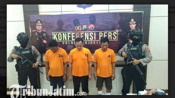 Polres Kabupaten Mojokerto, berhasil menangkap 3 tersangka pencurian dengan pemberatan di Jalan Raya Pasar Balongpanggang, Kabupaten Gresik