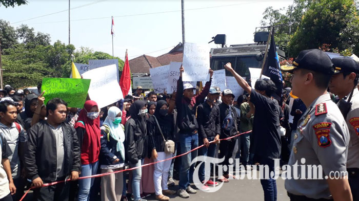 Mahasiswa yang berdemonstrasi kali ini merupakan gabungan dari Aliansi Badan Eksekutif Mahasiswa (BEM) se-Jember.
