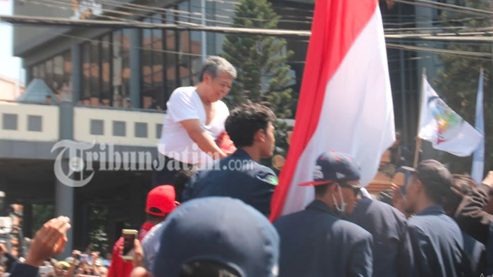 Sambut Demo Mahasiswa, Ketua DPRD Jatim Kusnadi Buka Baju 'Saya Bagian dari Kalian'