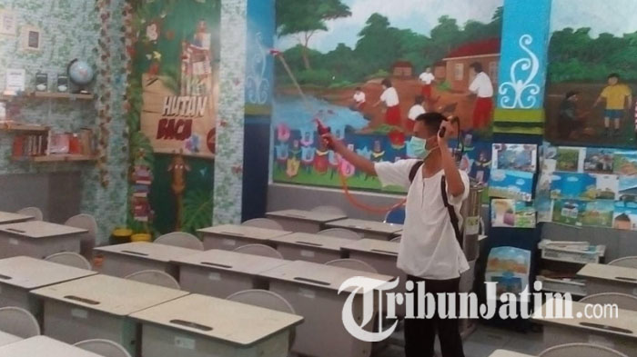 TRIBUNJATIM.COM, MALANG - Madrasah Ibtidaiyah Negeri (MIN) 1 Kota Malang melakukan sterilisasi dengan penyemprotan atau fogging di seluruh sudut sekolah. Sterilisasi dipilih pasca 212 siswa positif carrier difteri.