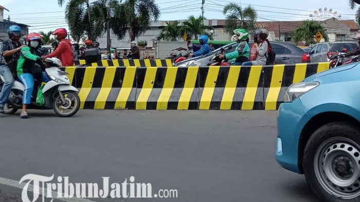 Pengdendara motor melawan arus di bawah jembatan layang Waru Sidoarjo