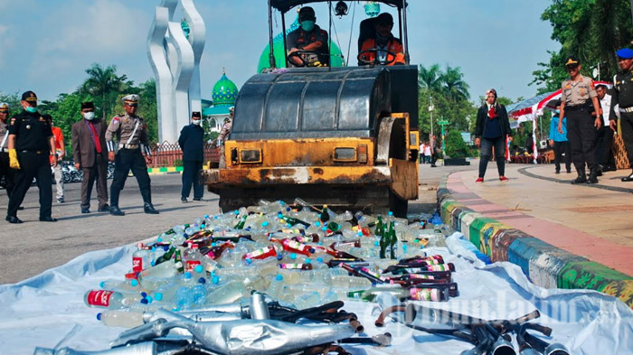 • Polres Pamekasan Gilas 789 Botol Miras dan 50 Knalpot Brong Sitaan dari Operasi Aman Semeru 2019