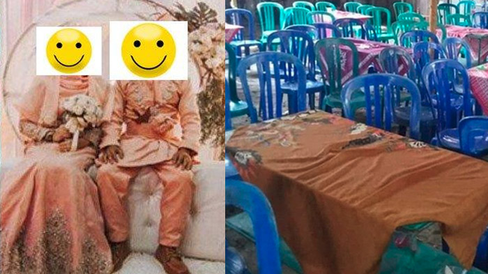 Resepsi pernikahan anak janda Jateng itu tampak sepi tamu.