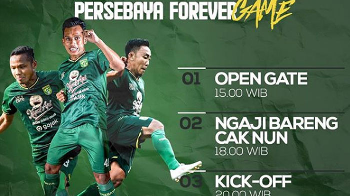 Susunan Acara Persebaya Forever Game, Ngaji Bareng Cak Nun hingga Kick Off Persebaya Vs Persis Solo
