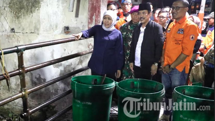 TRIBUNJATIM.COM, SIDOARJO - Gubernur Jawa Timur, Khofifah Indar Parawansa turun langsung memantau pembersihan Kali Buntung, Kecamatan Waru, Kabupaten Sidoarjo, Selasa (21/1/2020) tengah malam hingga Rabu (22/1/2020) dini hari.