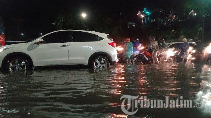 Terutama di kawasan Kecamatan Wonokromo, sejumlah ruas jalan dilaporkan tergenang banjir.