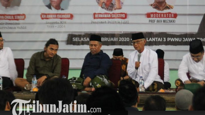 TRIBUNJATIM.COM, SURABAYA - Pengurus Wilayah Nahdlatul Ulama (PWNU) Jawa Timur menggelar bedah buku 'Menjerat Gus Dur', Selasa (4/2/2020) di Surabaya.