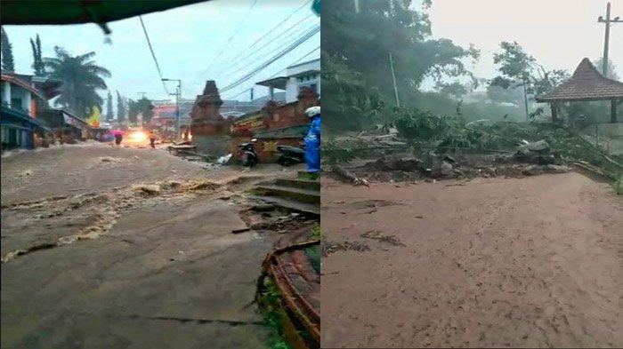 TRIBUNJATIM.COM, MOJOKERTO - Hujan deras dengan intensitas tinggi mengakibatkan banjir dan tanah longsor di Kecamatan Pacet, Kabupaten Mojokerto, Jumat (7/2/2020).