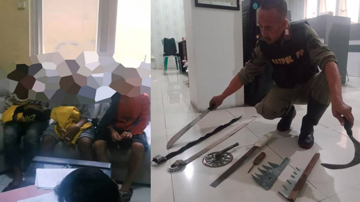 Satpol PP Tangkap 3 Anak di Bawah Umur Hendak Tawuran di Kapasari Surabaya, Bawa Celurit dan Parang