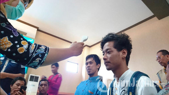 TRIBUNJATIM.COM, TULUNGAGUNG - Petugas Kantor Imigrasi Kelas II Non TPI Blitar dan Dinas Kesehatan Kabupaten Tulungagung melakukan pengecekan para mahasiswa asing dengan menggunakan thermal scan di IAIN Tulungagung, Kamis (13/2/2020).