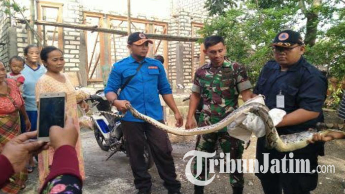 "Ada laporan warga terkait temuan ular piton, lalu petugas datang ke lokasi untuk menangkap," kata Kepala BPBD Tuban Yudi Irwanto kepada wartawan.