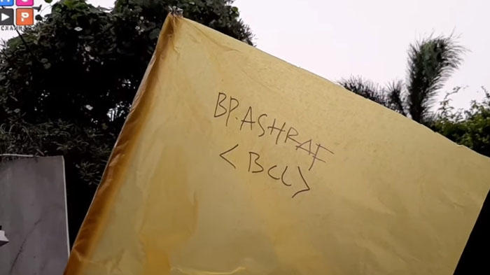 Bendera kuning tersebut bertuliskan "BP. ASHRAF ".