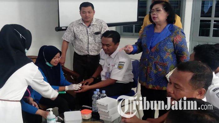 Tes urine digelar bekerja sama dengan Badan Narkotika Nasional Kabupaten (BNNK) Kabupaten Nganjuk.