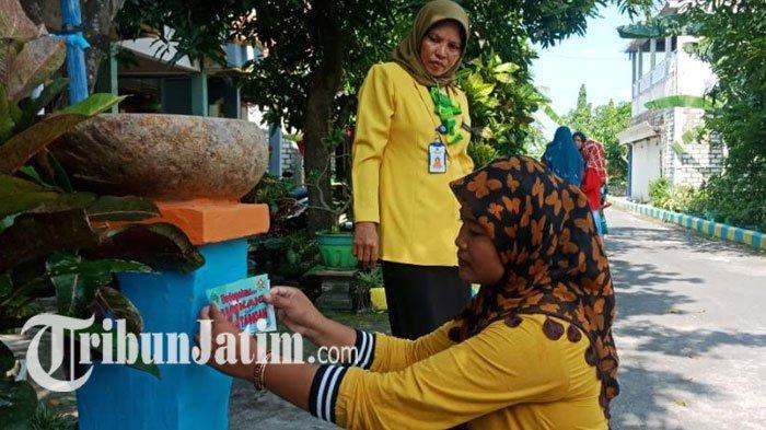 Aksi Emak-emak Lamongan Biasakan Cuci Tangan Cegah Coronavirus, Tempel Stiker di Westafel Tiap Rumah