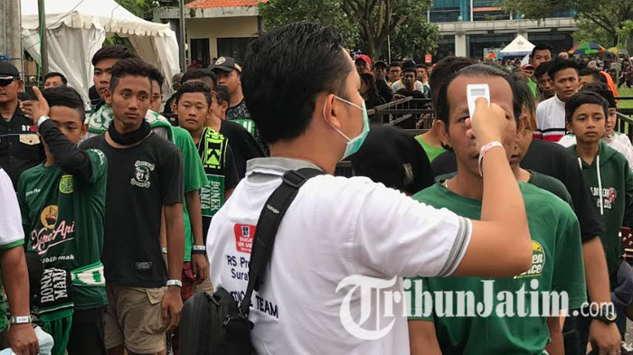 Cegah Merebaknya Virus Corona, Suhu Tubuh Bonek Diperiksa sebelum Laga Persebaya Vs Persipura di GBT
