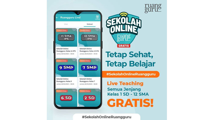 Menanggapi hal itu, bimbingan belajar berbasis aplikasi terbesar di Indonesia, Ruangguru, memberikan akses Sekolah Online Gratis bagi seluruh siswa di Indonesia.