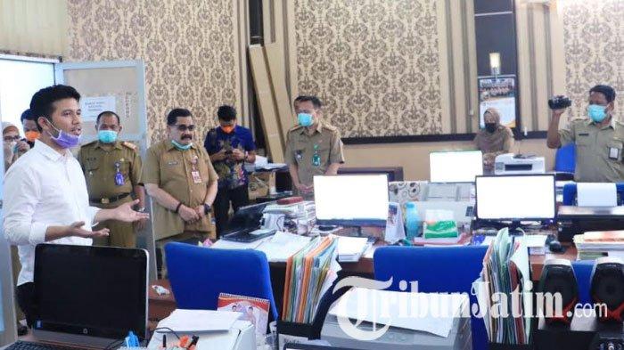 Wakil Gubernur Jawa Timur, Emil Dardak meninjau secara langsung penerapan sistem kerja selang-seling di Disperindag Jatim