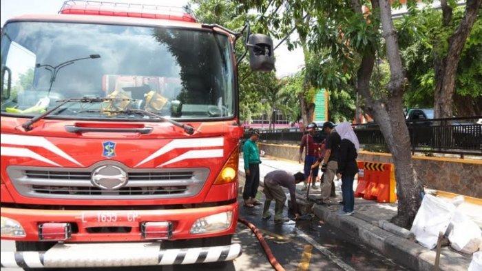 Mobil pemadam berkapasitas 3500 liter disiapkan untuk menyemprotkan seluruh area di wilayah perkotaan.