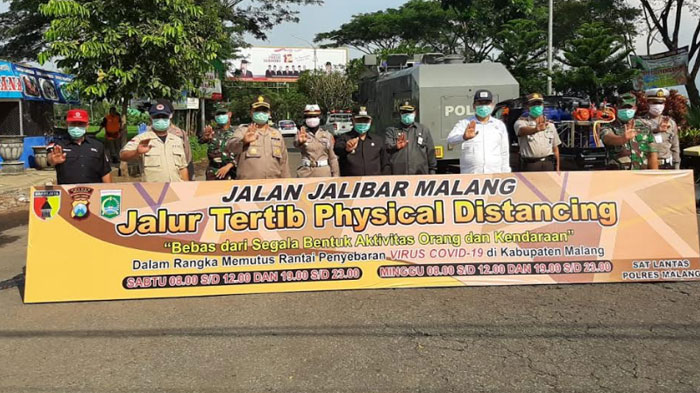 TRIBUNJATIM.COM, MALANG - Jalur Lintas Barat (Jalibar) yang berada di Kepanjen, Kabupaten Malang, mulai diterapkan physical distancing atau pembatasan jarak fisik untuk mengantisipasi penyebaran virus Corona (Covid-19).