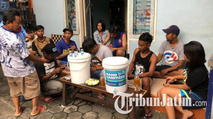 TRIBUNJATIM.COM, MALANG - Warga Jalan Muharto Gang IV, Kelurahan Jodipan, Kecamatan Blimbing, Kota Malang, berinisiatif membuat hand sanitizer dan cairan disinfektan secara mandiri.