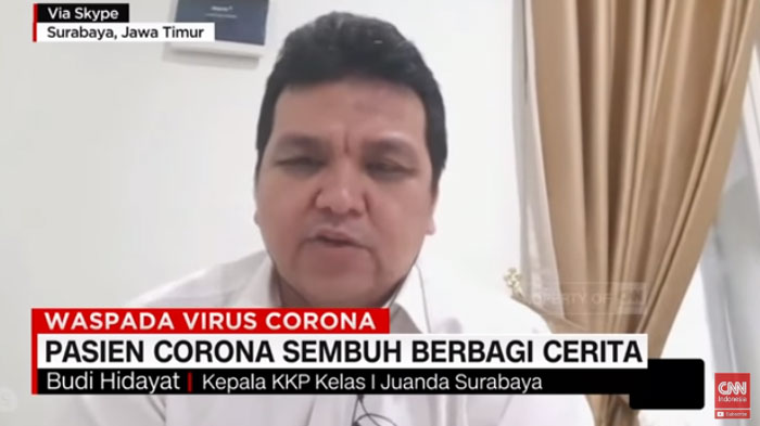 Salah satu pasien sembuh dari virus Corona, Kepala Kantor Kesehatan Pelabuhan (KKP) Kelas 1 Surabaya, Budi Hidayat menceritakan pengalamannya menjadi pasien.