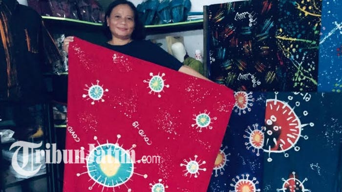 Ide Kreatif Pembatik Difabel di Blitar, Virus Corona Dijadikan Motif Batik, Lihat Potret Hasilnya!