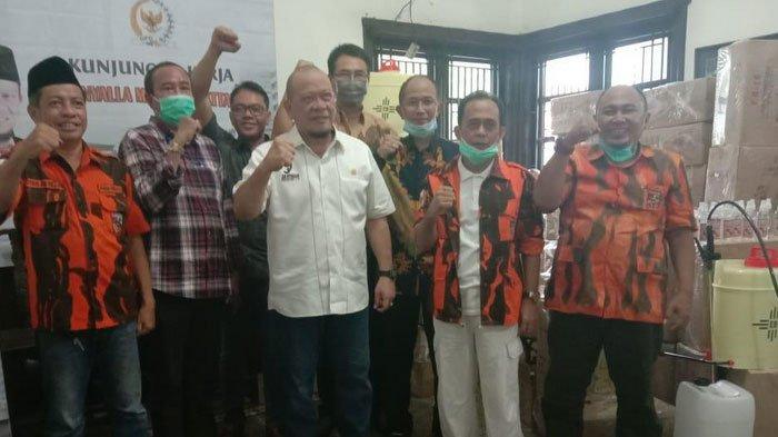TRIBUNJATIM.COM, SURABAYA - Ketua MPW Pemuda Pancasila Jawa Timur AA LaNyalla Mahmud Mattalitti membagikan 250 unit alat semprot Disinfektan kepada 38 MPC Pemuda Pancasila Kabupaten / Kota se Jawa Timur.