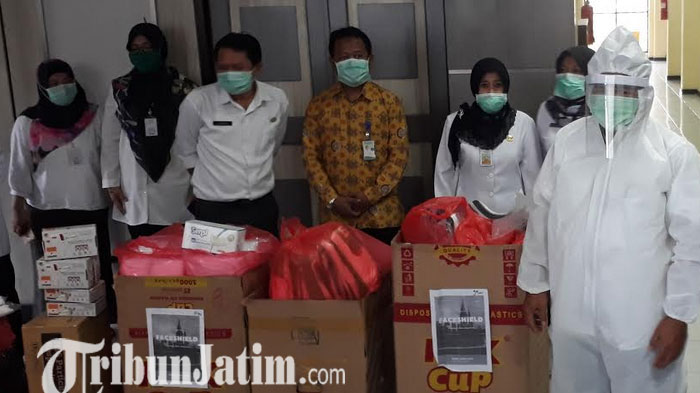 TRIBUNJATIM.COM, GRESIK - Dinas Kesehatan Kabupaten Gresik membagikan Alat Pelindung Diri (APD) kepada Puskesmas dan rumah sakit rujukan penanganan virus Corona atau Covid-19, Rabu (8/4/2020).