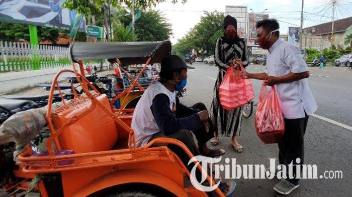 Pengusaha Muda Pasuruan Bagikan Masker dan Makanan untuk Tukang Becak dan Pedagang Asongan