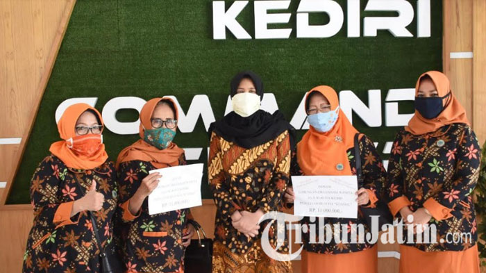 Gabungan Organisasi Wanita (GOW) Kota Kediri membantu warga yang terdampak pandemi virus Corona atau Covid-19 dengan berdonasi di Hari Kartini.