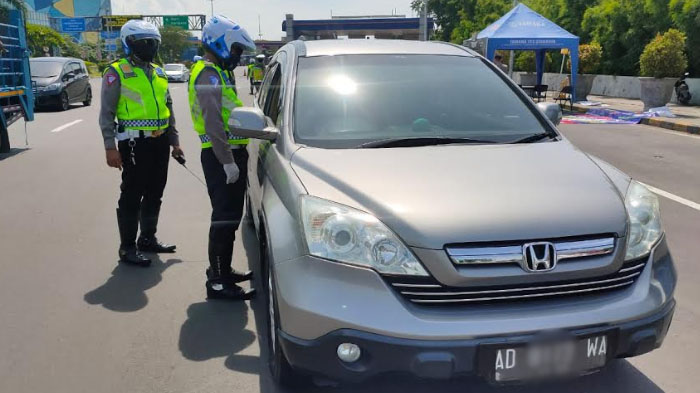 Ada larangan mudik, sejumlah kendaraan yang diketahui hendak mudik ke Sidoarjo langsung disuruh balik oleh polisi.