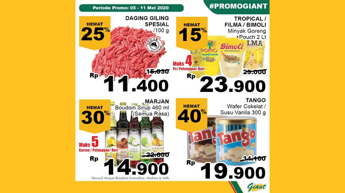 Berikut katalog promo Giant 8 hingga 11 Mei 2020, ada potongan harga untuk beberapa macam produk.