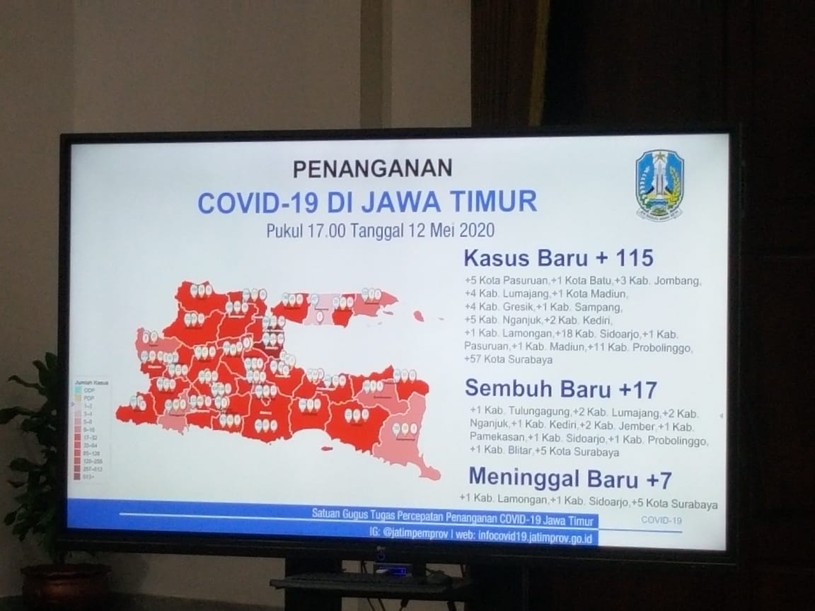 Kasus pasien positif virus Corona atau Covid-19 di Jawa Timur bertambah 115 orang per Selasa (12/5/2020).