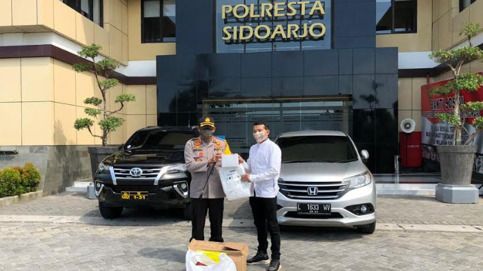 Bantuan ini diterima langsung oleh Kapolresta Sidoarjo, Kombes Pol Sumardji, di halaman Mako Polresta Sidoarjo.