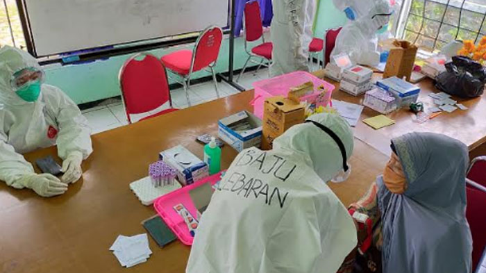 Rapid test kali ini dilakukan terhadap para pedagang yang mobilitasnya antar wilayah maupunsat luar kota. Totalnya ada 82 pedagang sayur yang menjalani tes cepat.