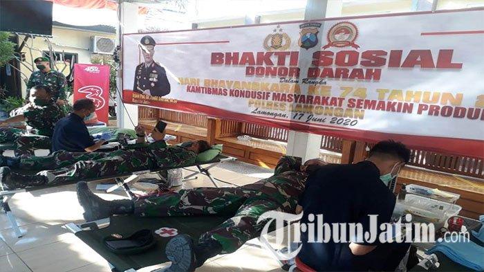 Puluhan anggota TNI turut menyumbangkan darahnya pada kegiatan yang menggandeng PMI Cabang Lamongan ini.