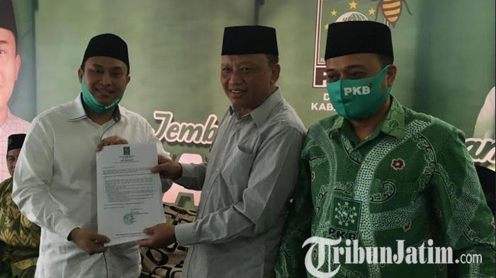 TRIBUNJATIM.COM, JEMBER - DPC Partai Kebangkitan Bangsa (PKB) Kabupaten Jember menyerahkan surat tugas kepada Ifan Ariadna Wijaya, Bakal Calon Bupati Jember untuk berlaga di Pilkada Jember 2020, Rabu (1/7/2020).