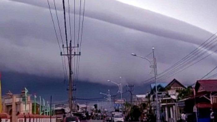 Gumpalan awan raksasa yang dinamakan sebagai awan arcus atau roll cloud (awan gulung) tersebut disebut bisa memicu badai dan hujan lebat.