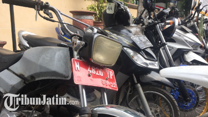 Satu dari 164 smotor barang bukti perjudian sabung ayam di Polres Lumajang ada yang berplat merah. Kasatlantas AKP I Putu Angga akan cari orangnya.