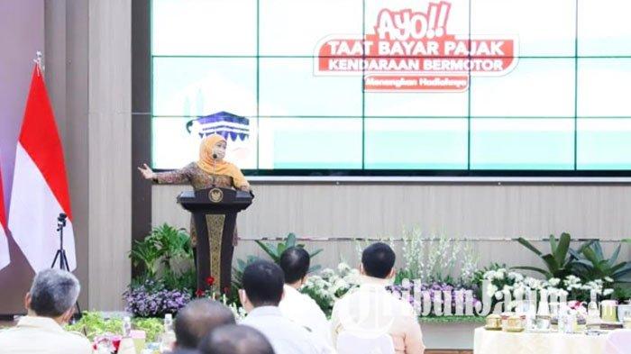 Gubernur Khofifah Beri Hadiah Tabungan Umrah untuk 10 Wajib Pajak yang Taat Bayar PKB saat Pandemi