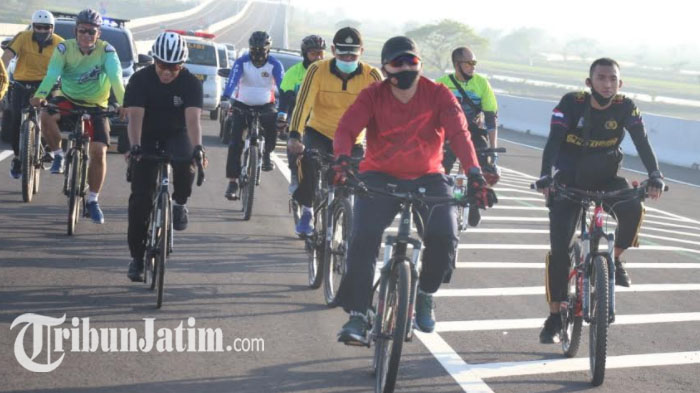 Kapolres bersama pejabat utama bersepeda di tol yang menghubungkan Gresik dengan Krian, Sidoarjo itu.