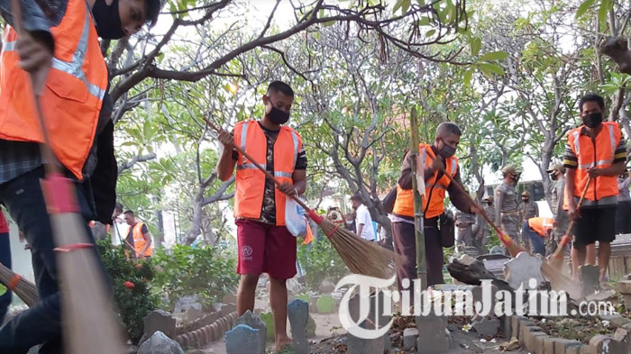 Tak Pakai Masker, Puluhan Warga Sidoarjo Dihukum Bersihkan Makam Waru, Polisi: Biar Mereka Jera