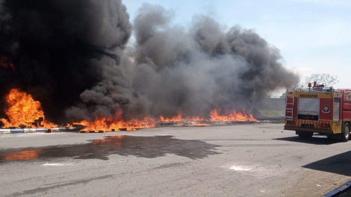 Peristiwa kebakaran ini berawal dari pembakaran sampah rumput di sekitar lokasi.