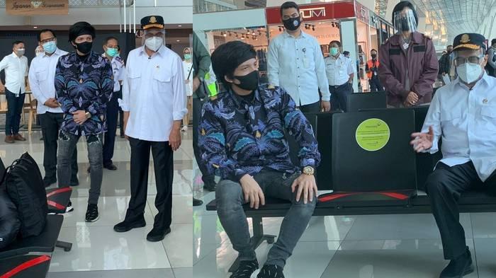 Gaya busana Atta Halilintar yang dinilai tak pantas kala bertemu dengan Menteri Perhubungan Budi Karya Sumadi di Terminal 3 Bandara Soekarno-Hatta.