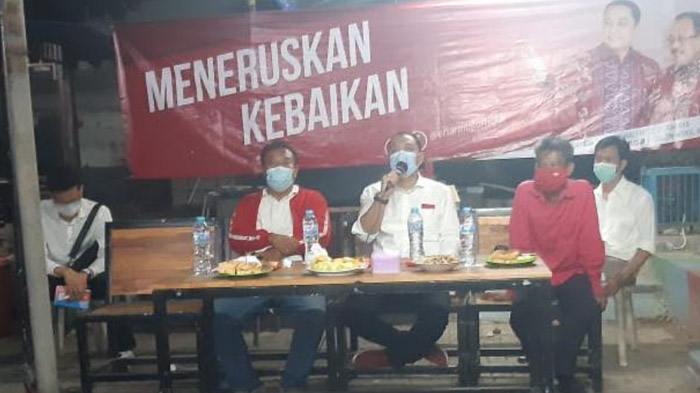 Ketua Relawan Pendukung Eri Cahyadi Non Partai Kecamatan Sukolilo, Eko Busono memberikan penjelasan.