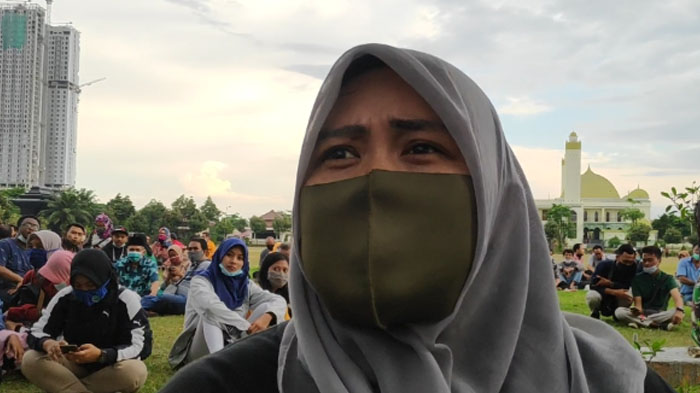 Ibu asal Panceng, Gresik ini tak mengira bila anaknya ikut aksi tolak Omnibus Law di Surabaya.
