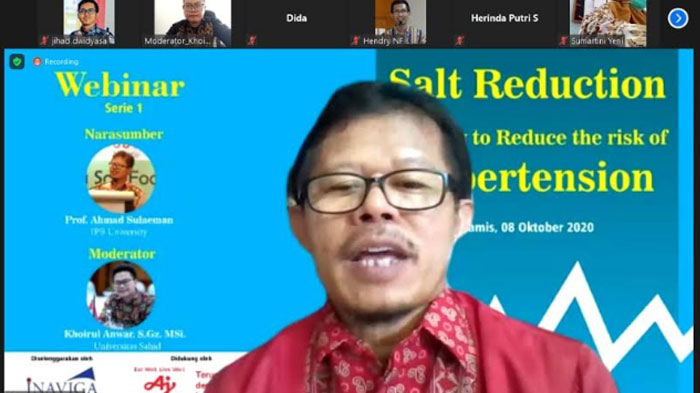 "Jadi, jika kalian tetap ingin makanan yang dikonsumsinya memiliki cita rasa yang tinggi, namun sekaligus ingin diet rendah garam juga, cara ini sangat sesuai. Dan faktanya, strategi ini juga dapat meningkatkan sistem imun kita,” ungkap Prof Ahmad, saat memberikan materi dalam acara webinar.