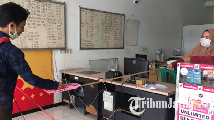TRIBUNJATIM.COM, LUMAJANG - Toko pulsa di Jalan Kapten Suwandak No 66, Lumajang, punya cara unik untuk mencegah risiko penularan virus Corona ( Covid-19 ).